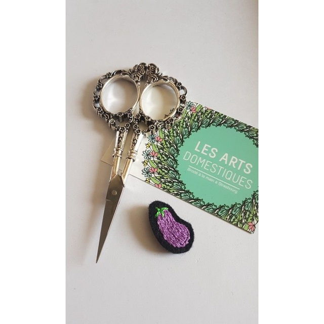 Une broche aubergine brodée et réalisée entièrement à la main à Strasbourg !