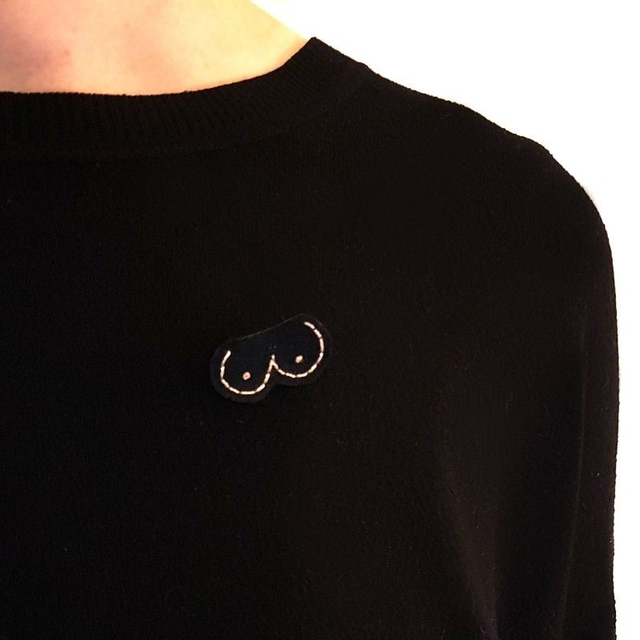 Une broche boobs brodée et réalisée entièrement à la main à Strasbourg en fil de coton perlé !