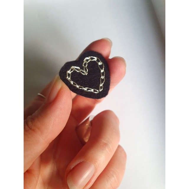 Une broche motif cœur, brodée et réalisée entièrement à la main!